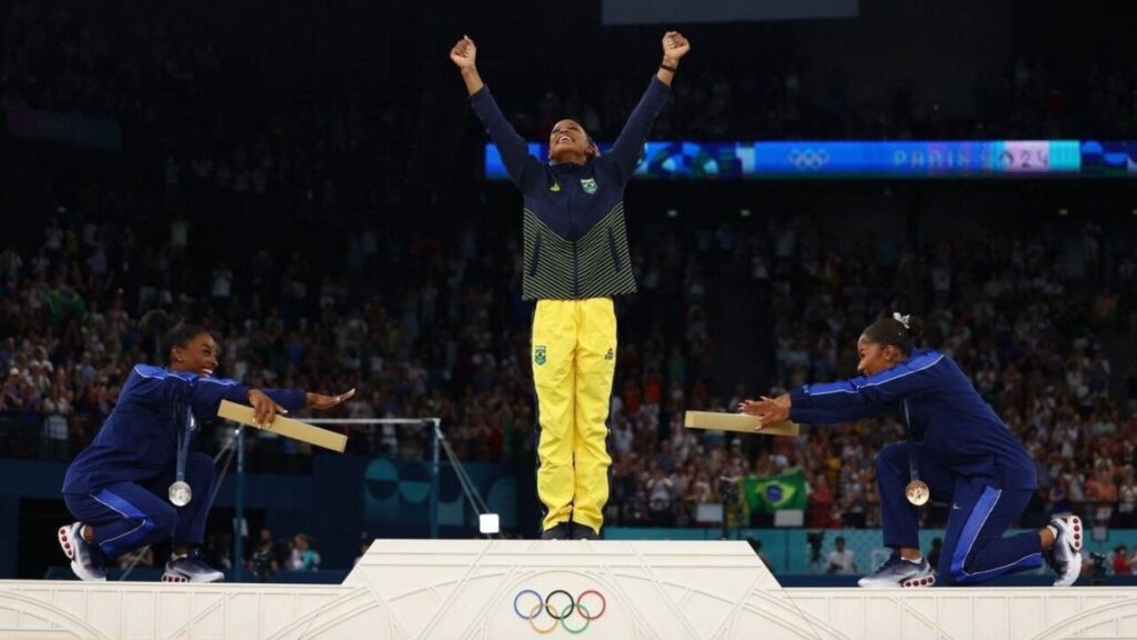 Ginasta de 25 anos levou ouro no solo e se tornou a maior medalhista olímpica do país Rebeca Andrade é a atleta com mais medalhas na história do Brasil em Jogos Olímpicos. A atleta conquistou o ouro no solo nesta segunda-feira (5), superando o recorde dos velejadores brasileiros Robert Scheidt e Torben Grael, cada um com cinco medalhas. A ginasta de 25 anos conquistou quatro medalhas na Olimpíada de Paris (um ouro, duas pratas, no individual geral e no salto, e um bronze na disputa por equipes). Nos Jogos de Tóquio, também levou um ouro e uma prata. Mas além da medalha, os atletas brasileiros recebem do COB (Comitê Olímpico Brasileiro) um prêmio em dinheiro. Com as quatro medalhas, Rebeca garantiu R$ 826 mil. O ouro no individual vale R$ 350 mil, cada prata vale R$ 210 mil e o bronze por equipes, R$ 280 mil (R$ 56 mil para cada uma das cinco atletas). PatrocíniosO sucesso de Rebeca na ginástica se reflete nas suas redes. A cada competição, o número de seguidores da ginasta no Instagram cresce exponencialmente. Até o domingo (8), antes das finais da trave e do solo, eram 7,6 milhões de seguidores. Essa popularidade também se converte em ganhos para a atleta-influencer, que fechou contratos com marcas como Havaianas, Volvo e Parmalat durante os Jogos Olímpicos, além de já ter feito publicidade para Adidas e Bradesco. E os ganhos de Simone Biles?É comum que os patrimônios de grandes atletas estejam atrelados principalmente aos seus patrocínios. Maior medalhista da ginástica, a americana Simone Biles ganhou US$ 7,1 milhões (R$ 40,7 milhões) no ano passado, segundo estimativas da Forbes. Mas apenas US$ 100 mil vêm diretamente da ginástica, e o restante de contratos milionários com marcas como Visa, a empresa de roupas de ginástica GK Elite e a marca de roupas esportivas Athleta. Simone Biles tem no currículo sete medalhas de ouro em Olimpíadas – quatro conquistadas na Rio-2016 e outras três em Paris, por equipes, no individual geral e no salto. A americana ficou com a prata no solo nesta segunda-feira (5). Cada comitê olímpico estabelece os valores pagos aos seus atletas. No caso de Biles, garantiu US$ 135 mil em Paris – cada medalha de ouro para os EUA vale US$ 37,5 mil (R$ 215 mil) e a prata vale US$ 22,5 mil (R$ 129 mil). Ou seja, menos do que o Brasil paga a seus atletas. Fonte: Forbes